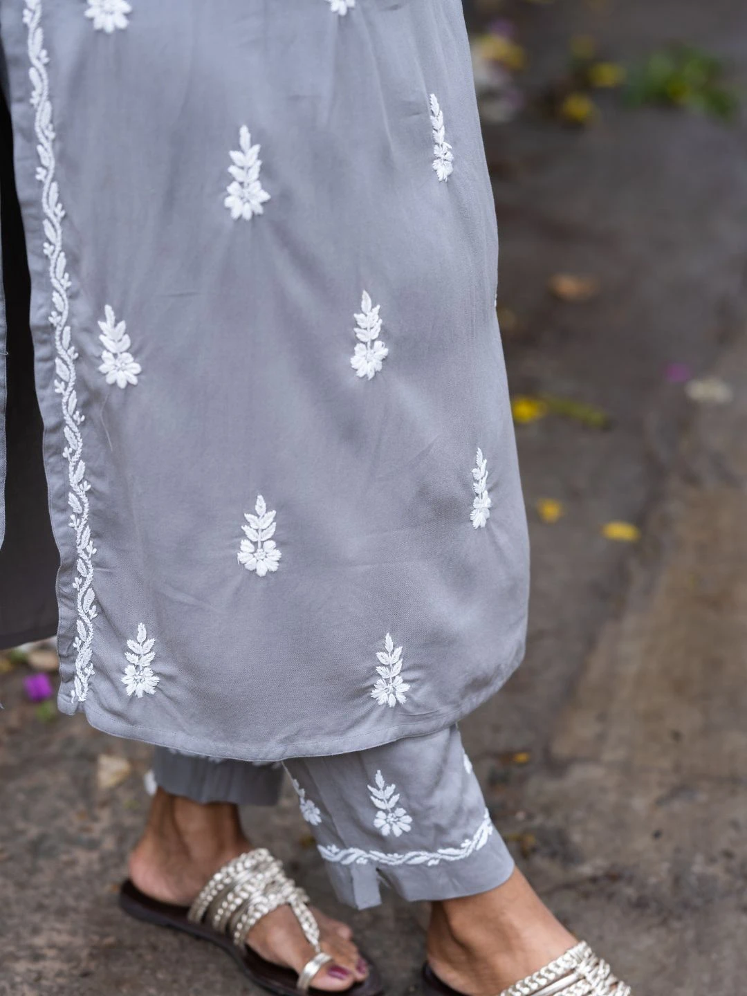 Hand Embroidered Grey Rayon Lucknowi Chikankari Co-Ord Set