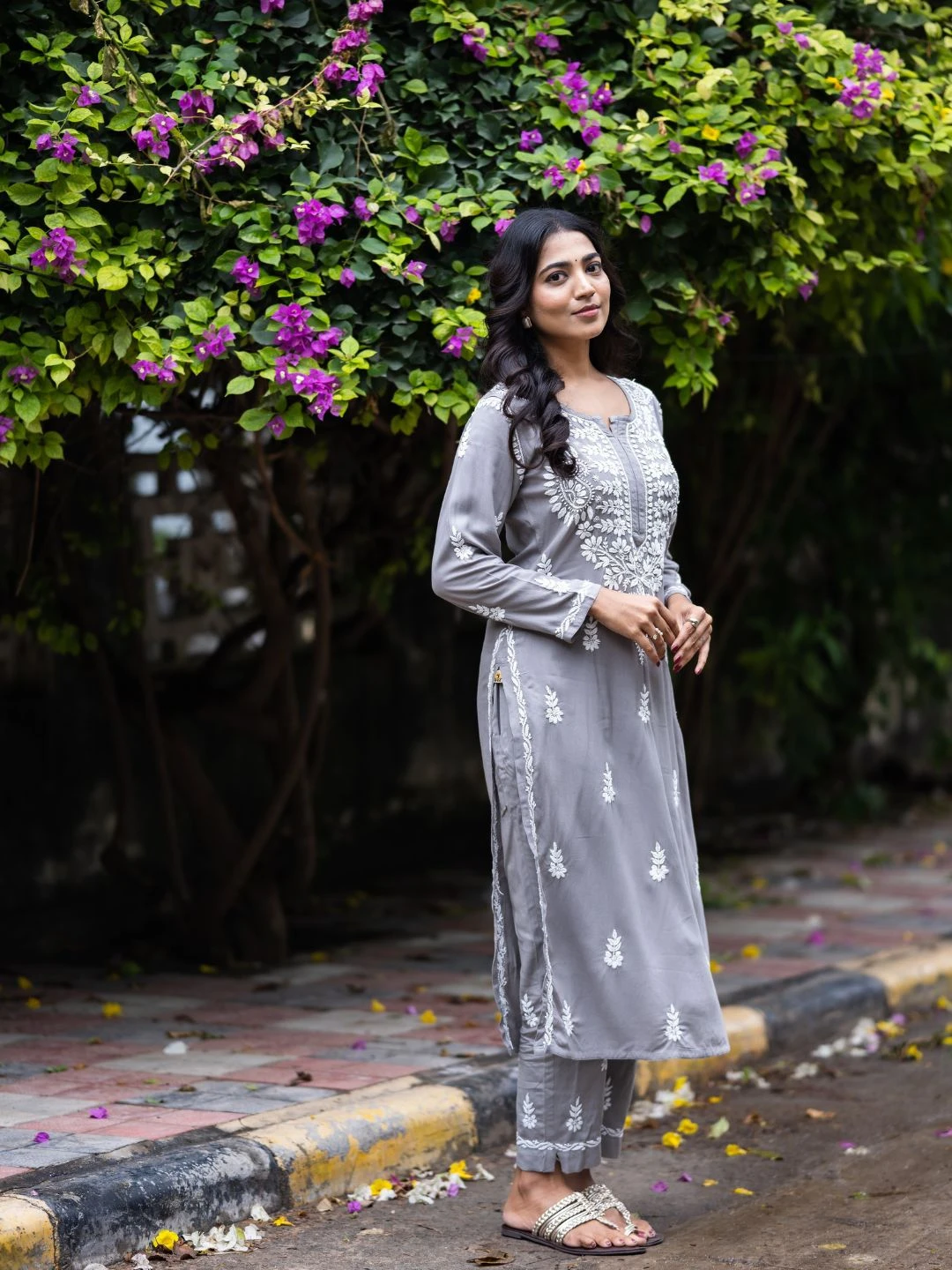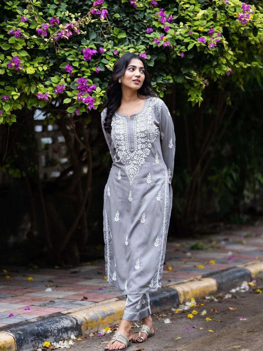 Be the first to review “Hand Embroidered Grey Rayon Lucknowi Chikankari Co-Ord Set”