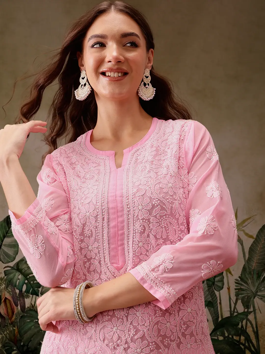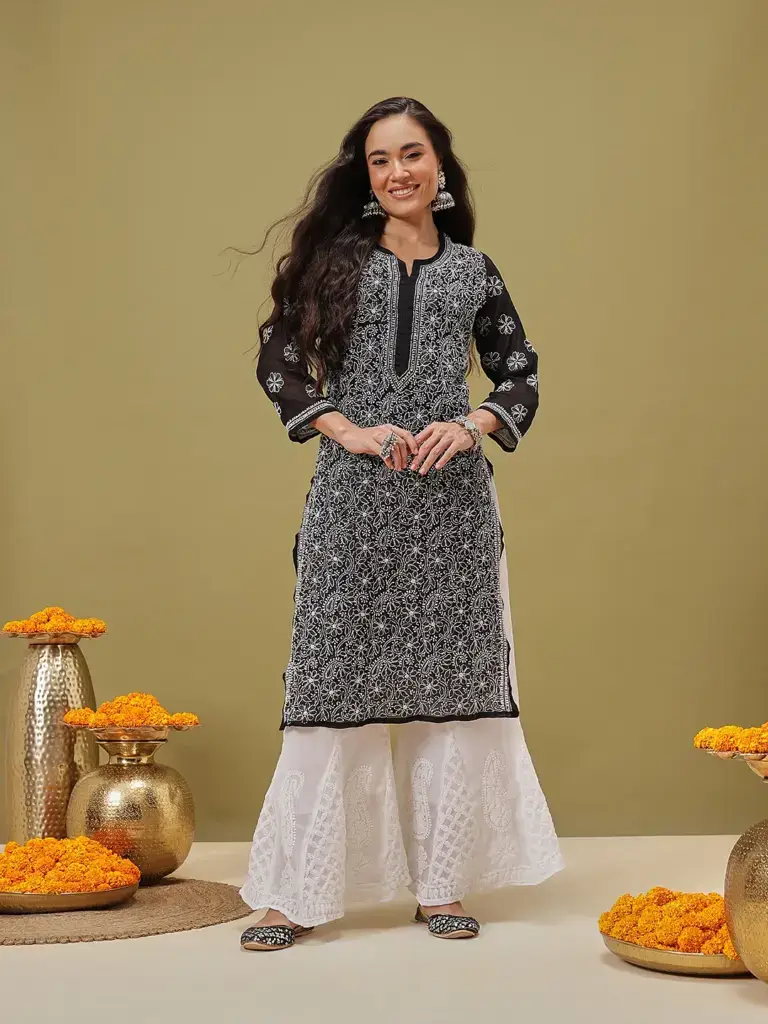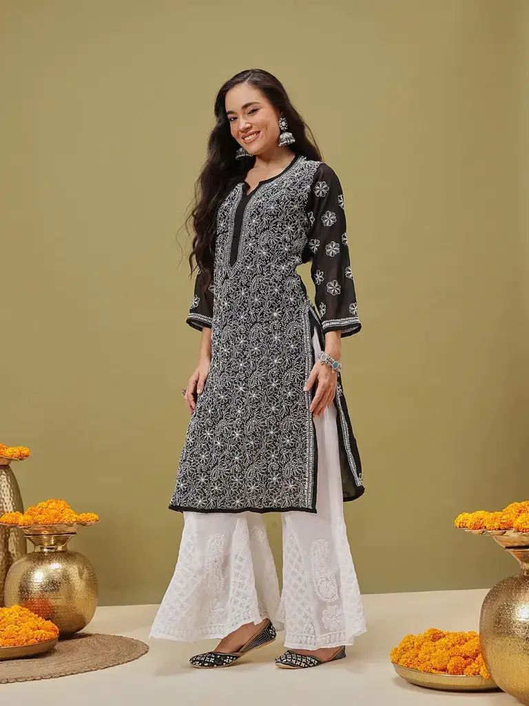 Be the first to review “Kaashley Hand Embroidered Baby Pink Georgette Lucknowi Chikankari Straight Kurta With Palazzo” Cancel reply