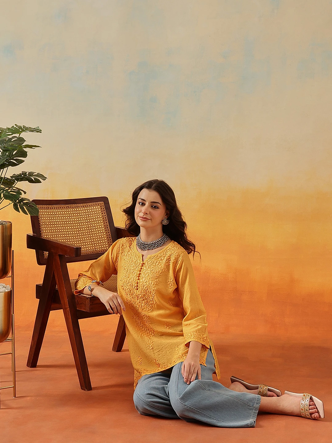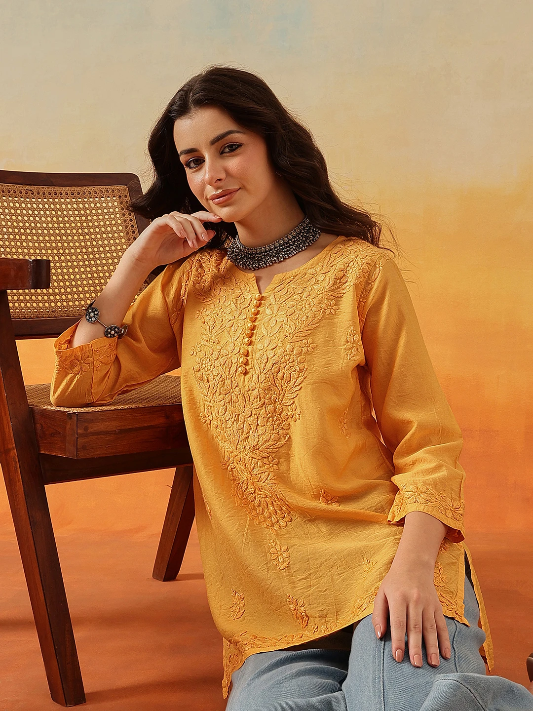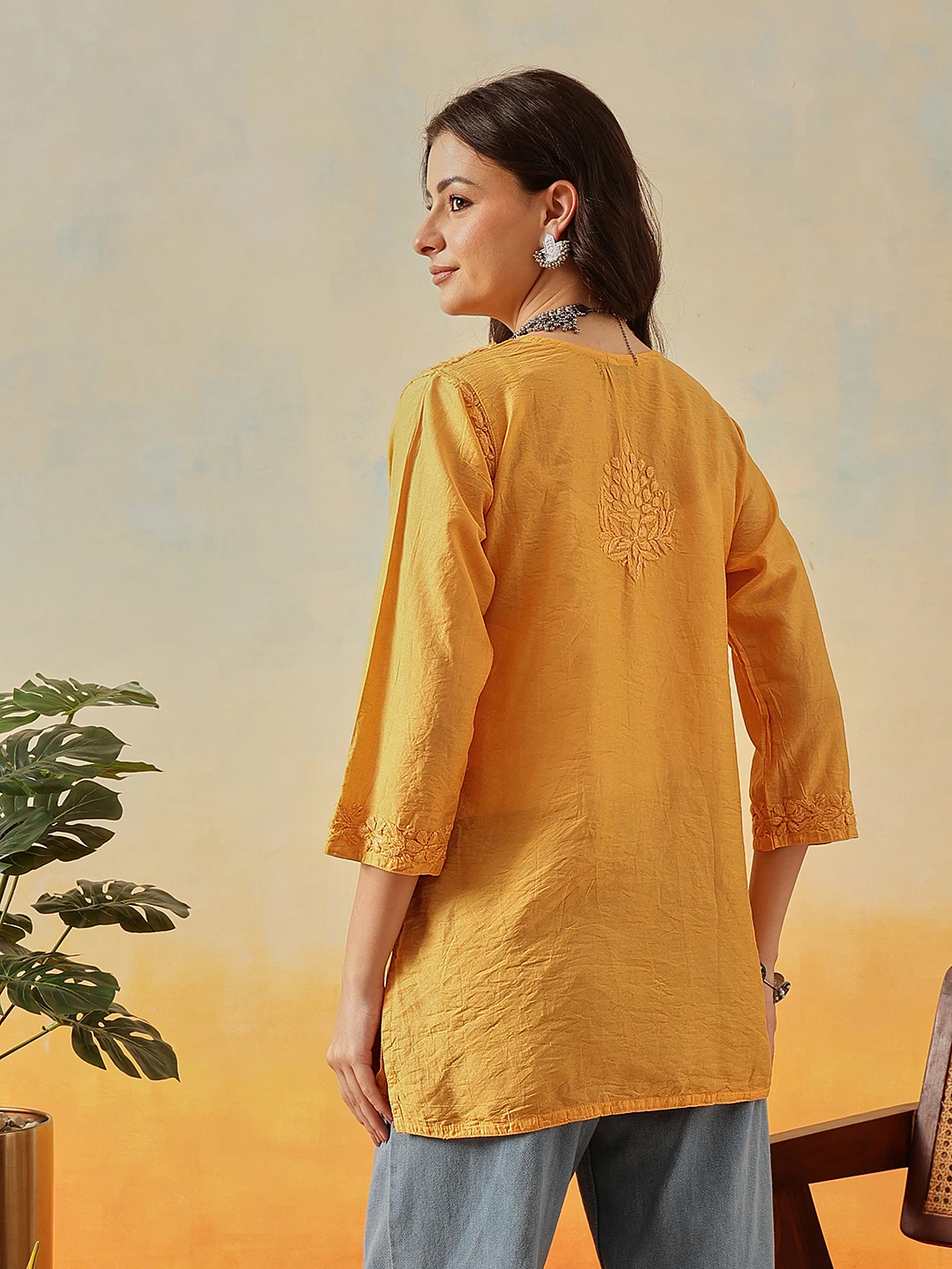 Be the first to review “Kaashley Hand Embroidered Mustard Chanderi Lucknowi Chikankari Short Kurti” Cancel reply