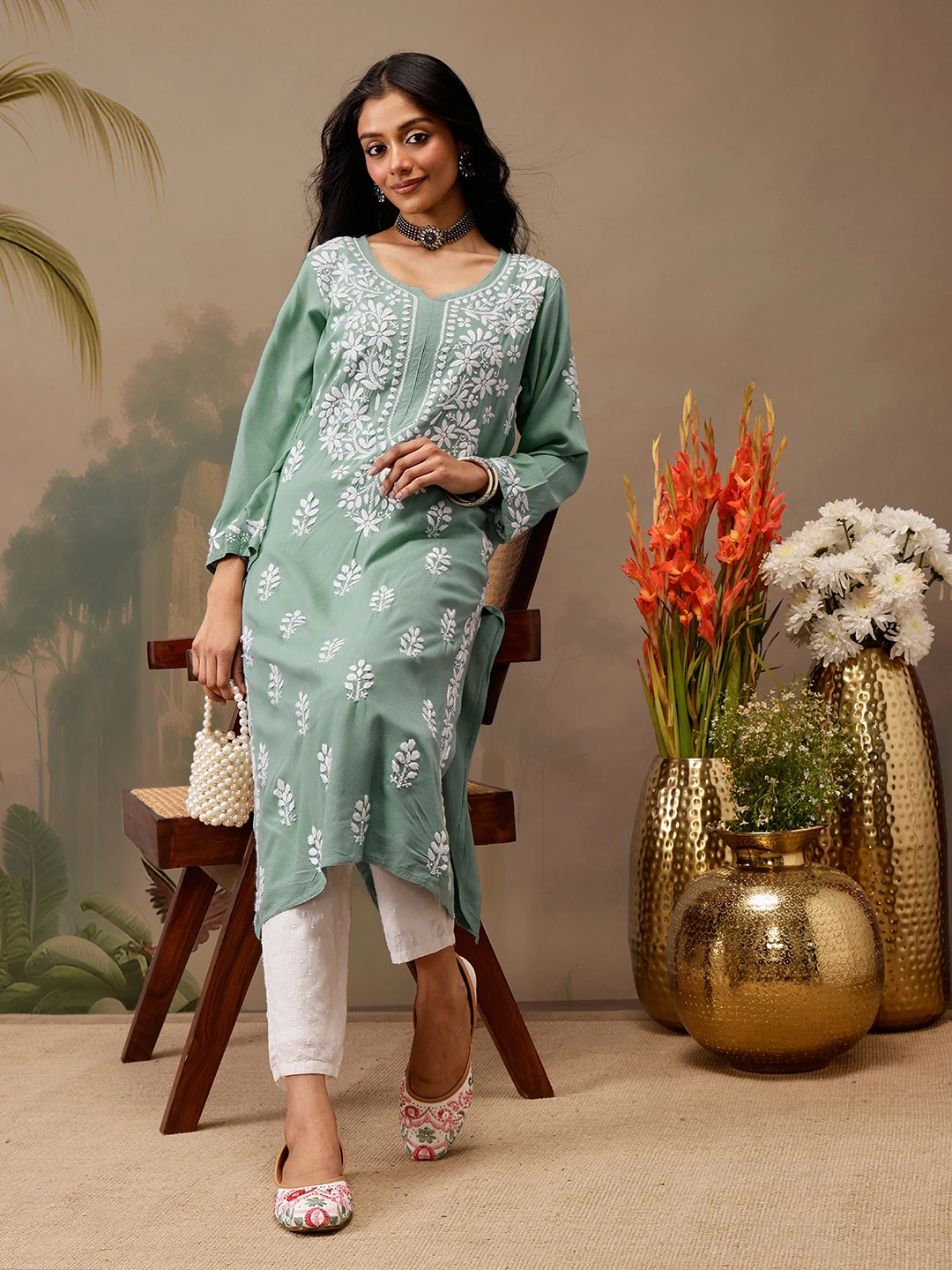 Be the first to review “kaashley Hand Embroidered Teal Green Rayon Lucknowi Chikankari Straight Kurta” Cancel reply